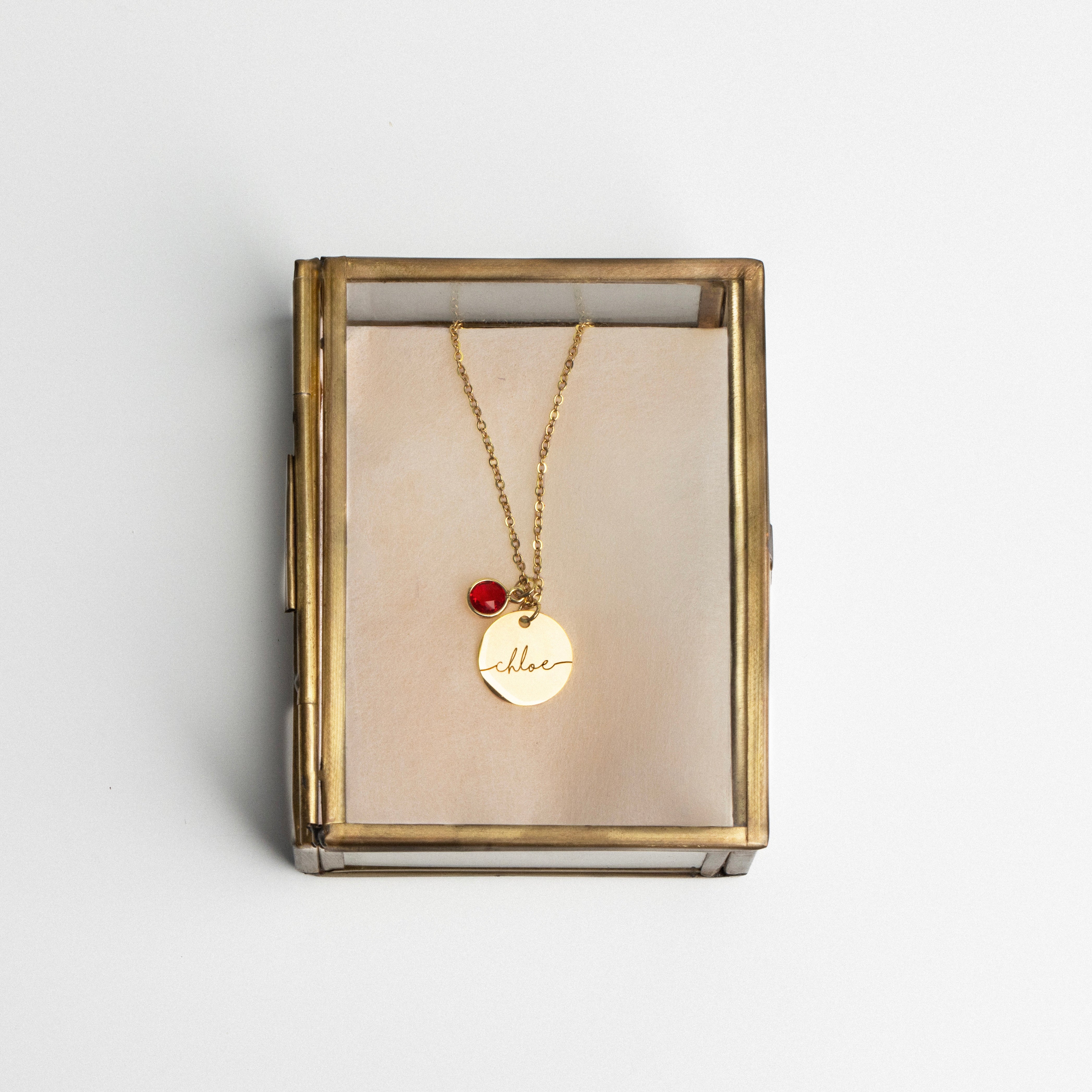 Petite, unique, and absolutely astonishing necklace with name personalized coin and birthstone. Available in three colors: rose gold, gold, and silver. Cam be personalized: choose the birthstone and name for your necklace. The perfect gift for any occasion! Customized with love, it is sure to be a special charm they will treasure for many moments to come.
